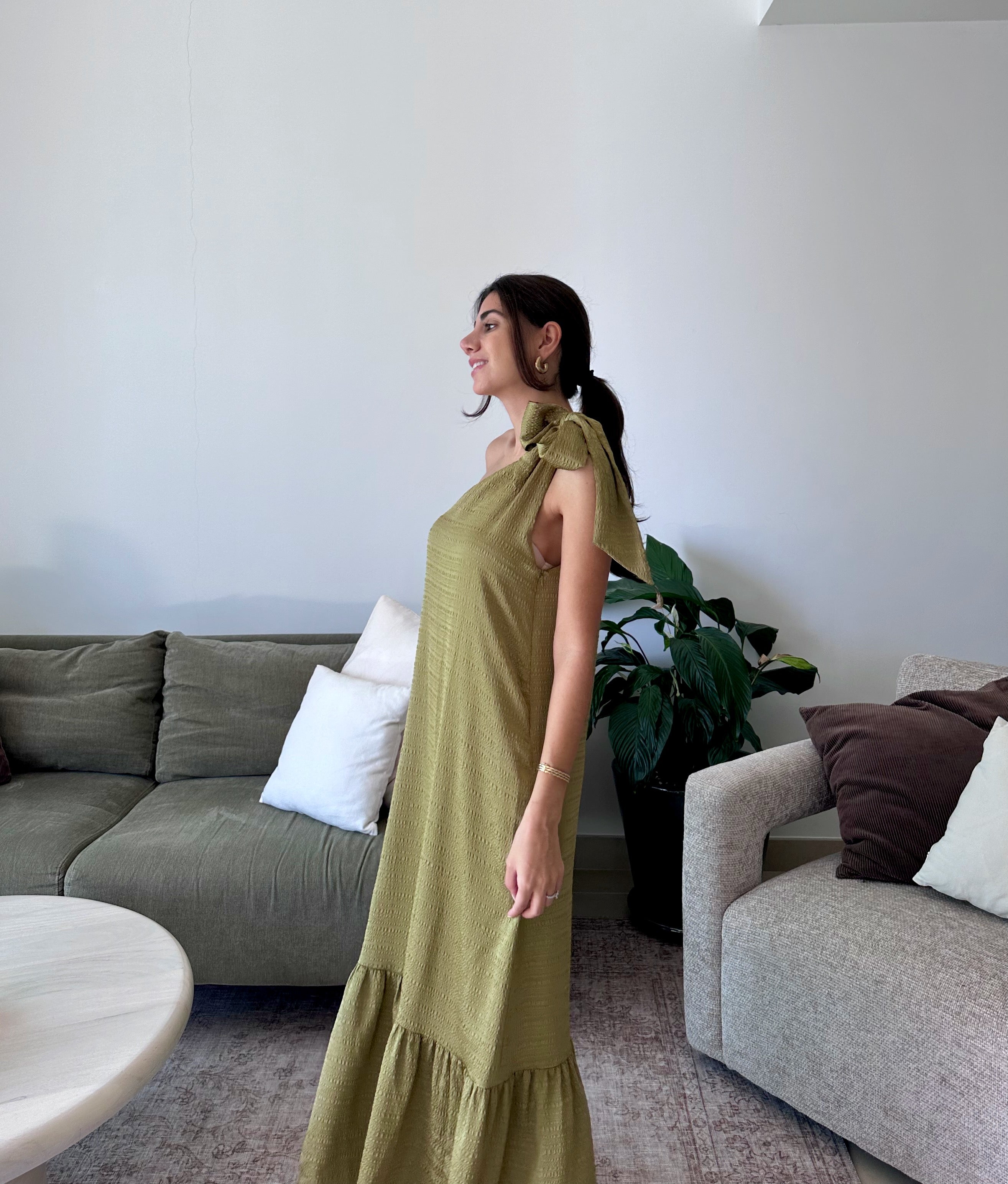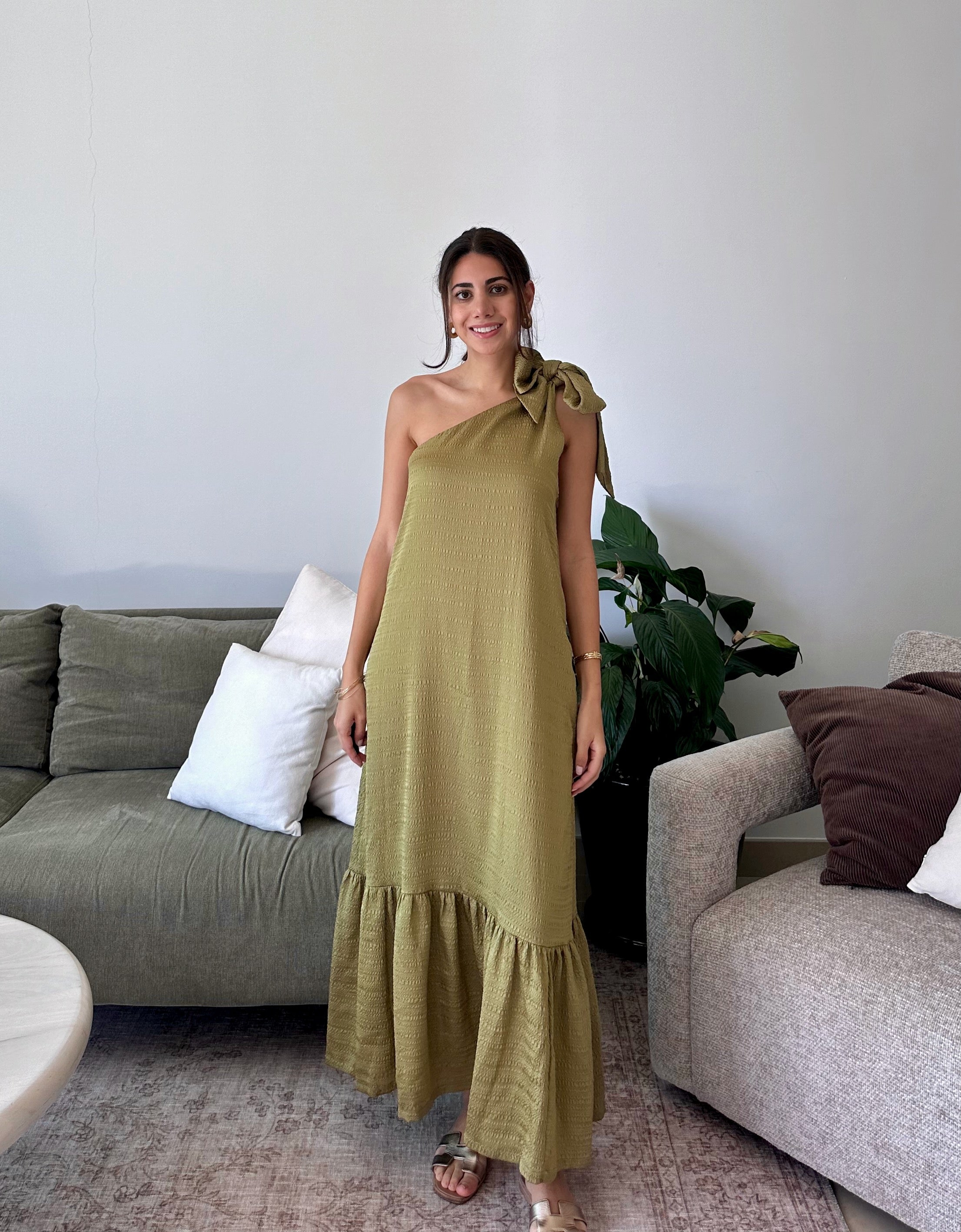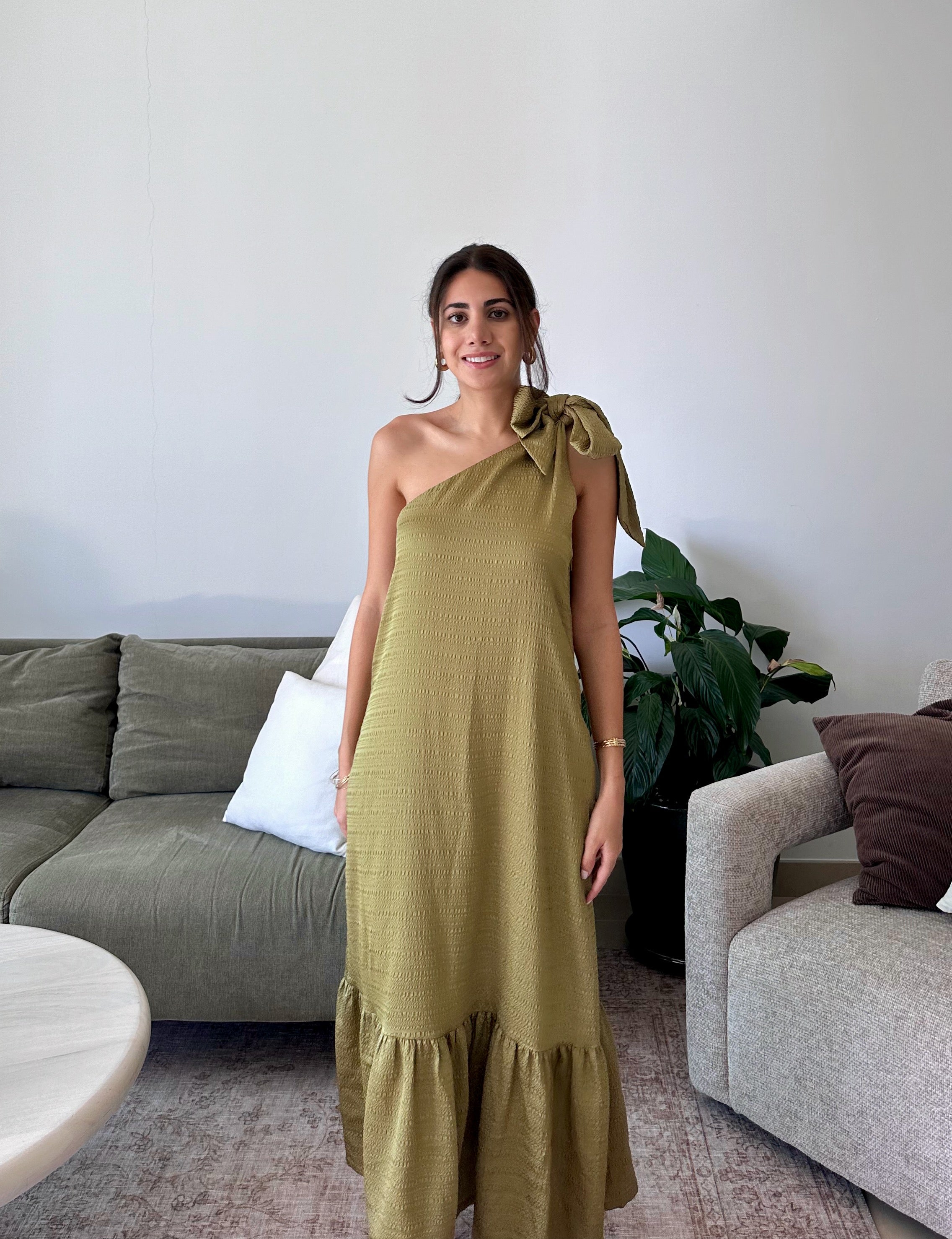Maison Stella & Suzie Olive Green One-Shoulder Dress