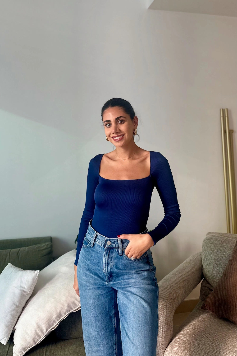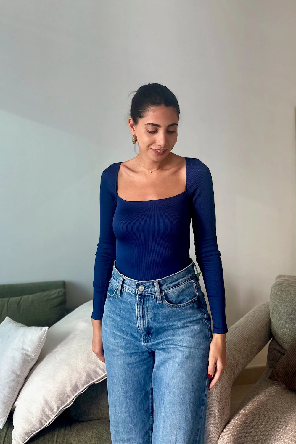 The long sleeves make it ideal for day-to-night styling, whether paired with high-waisted trousers, a chic skirt, or layered under a blazer.