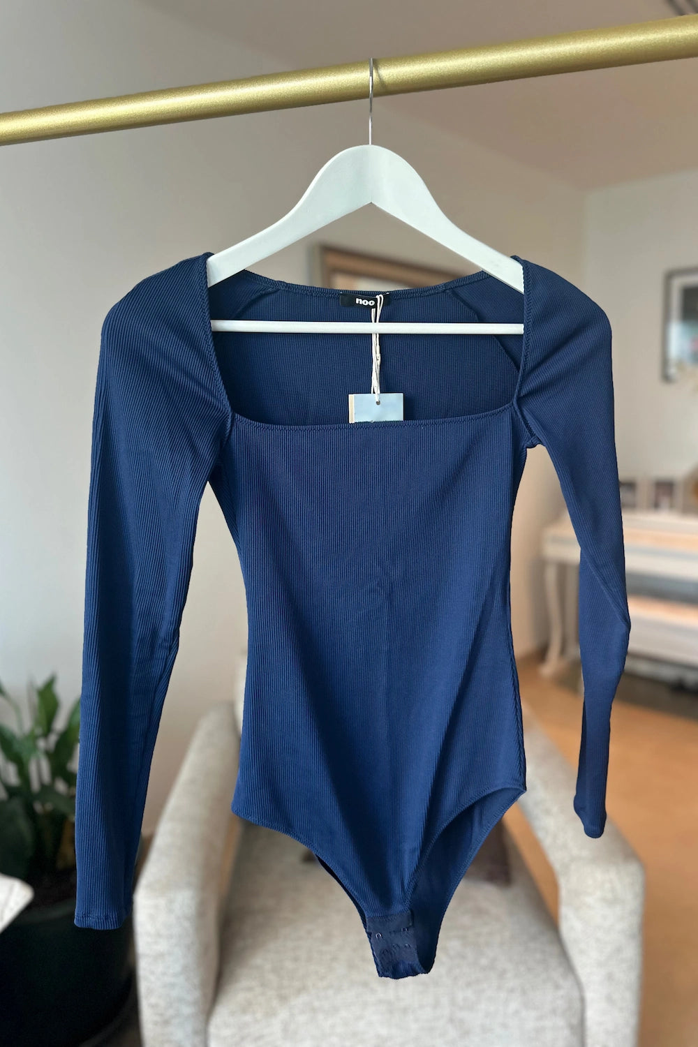 Discover refined simplicity with this NOO blue long-sleeve bodysuit, designed for a sleek and elegant silhouette.