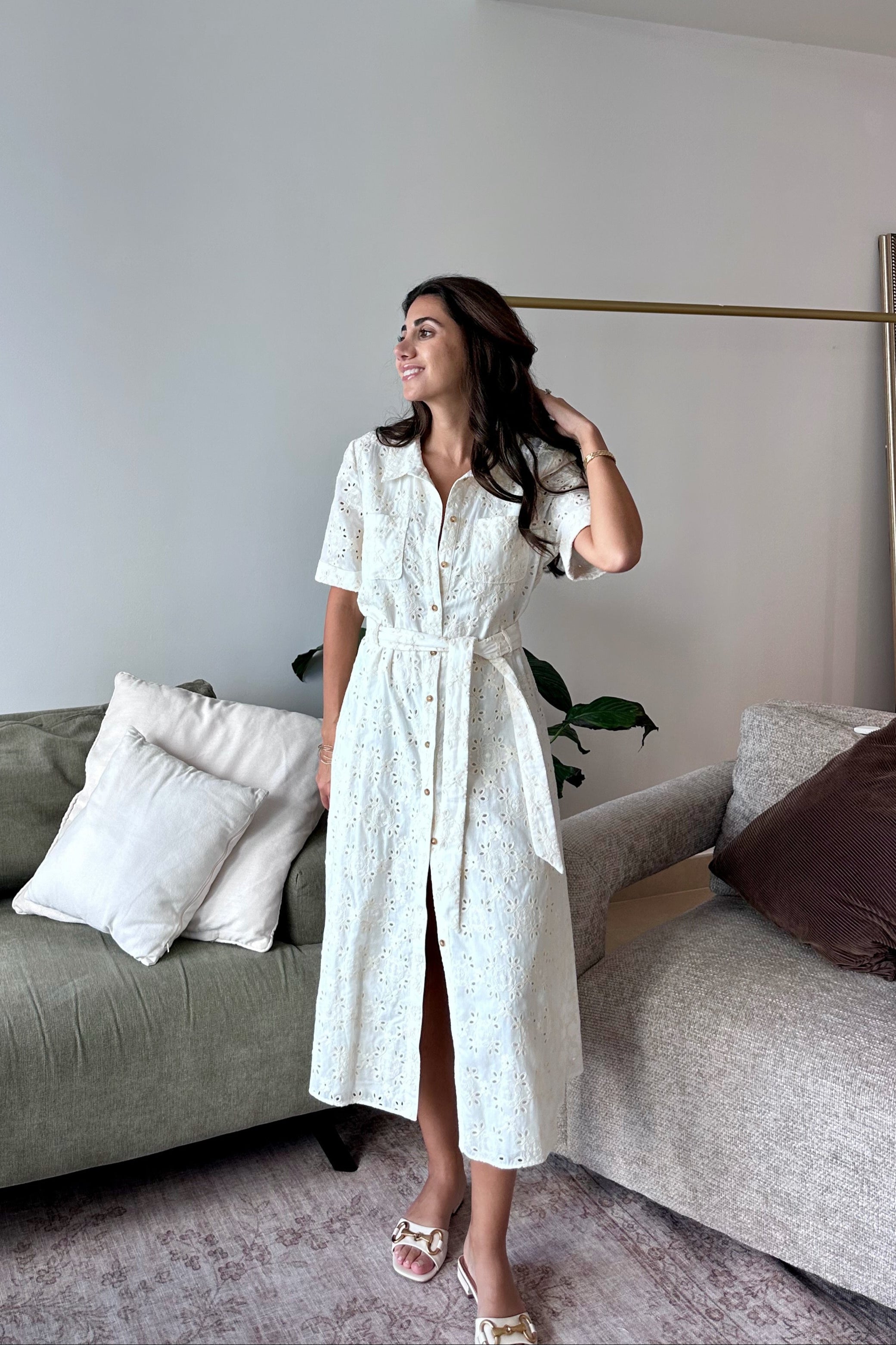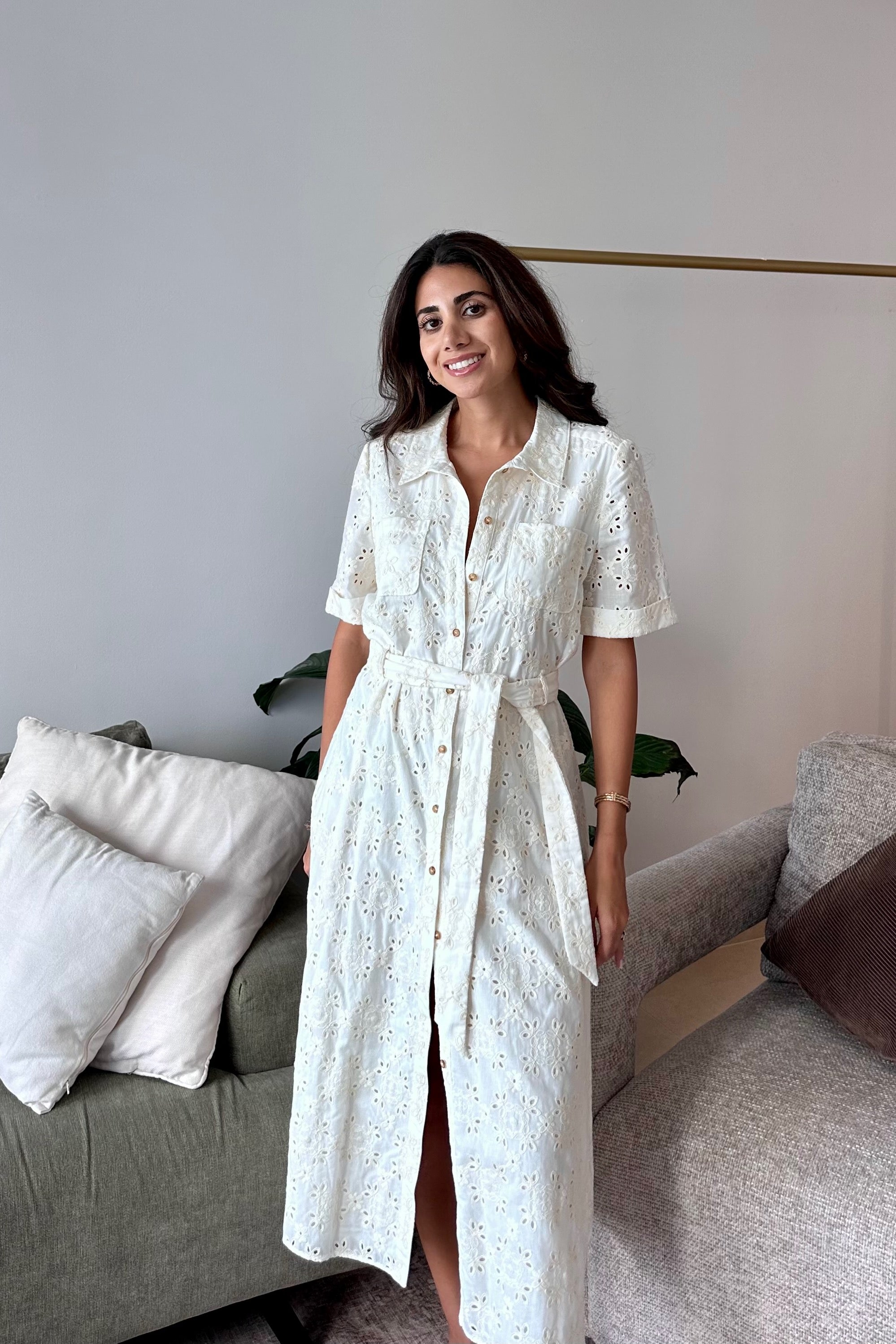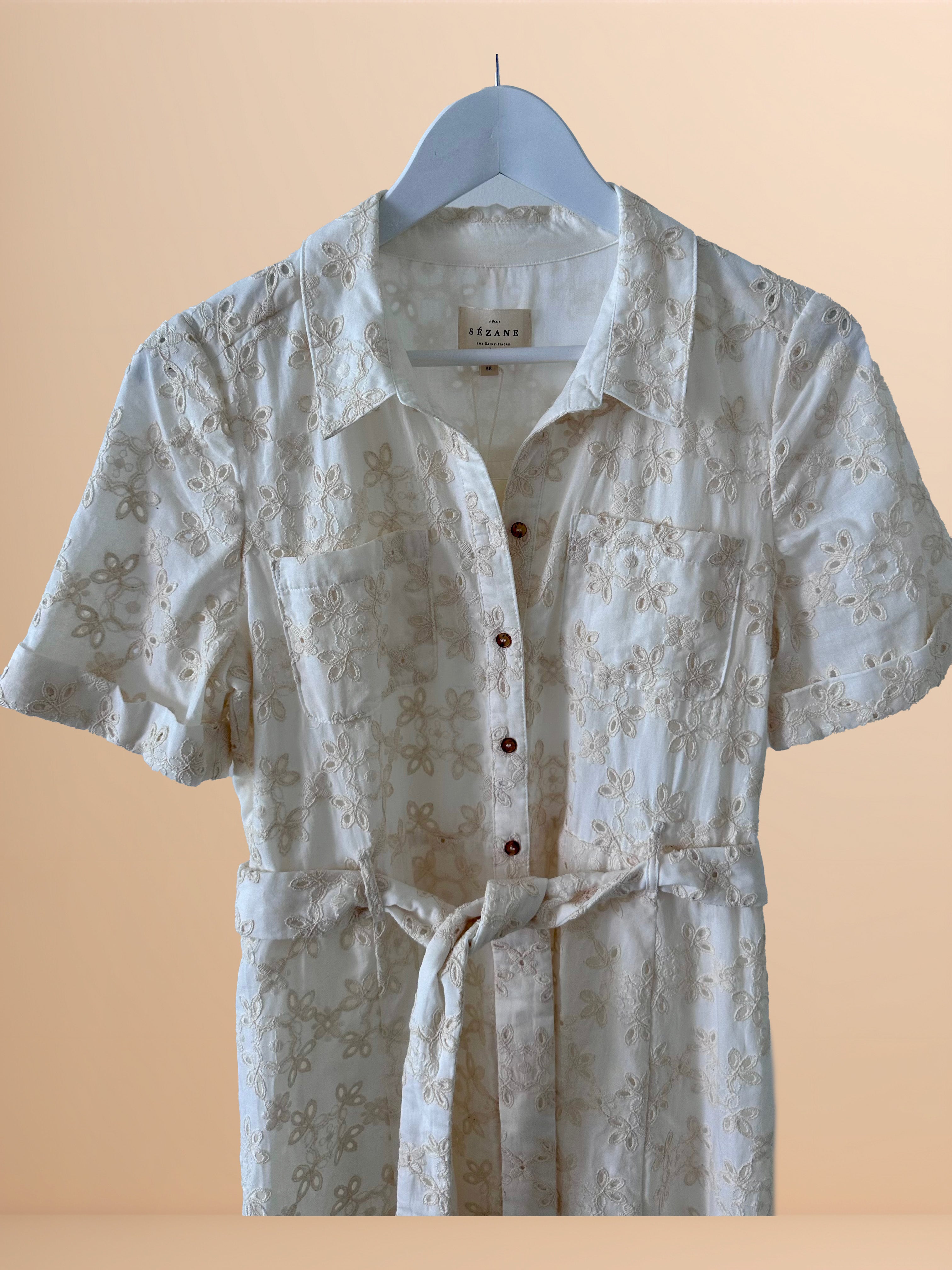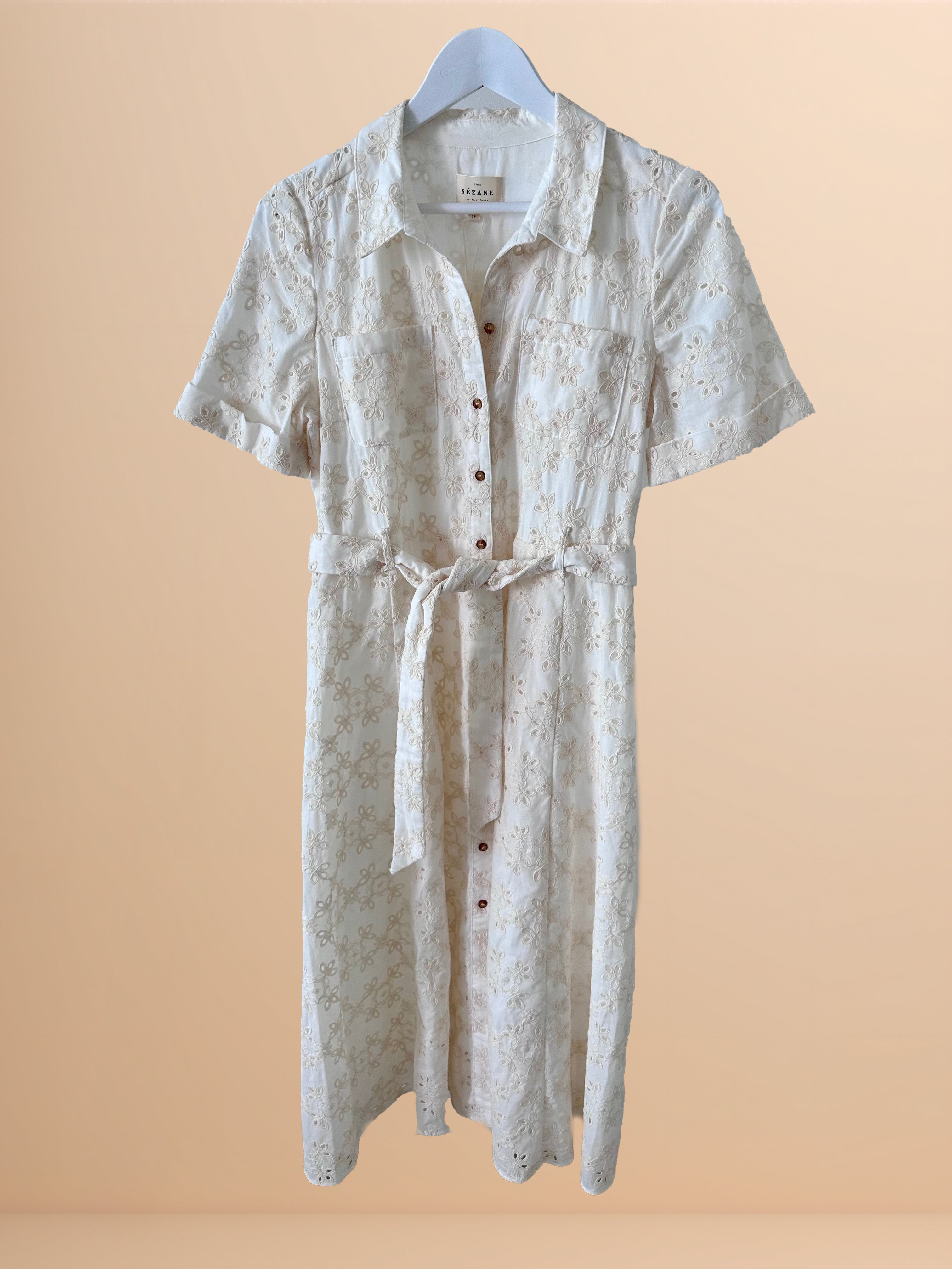 Sézane Ecru Broderie Anglaise Dress