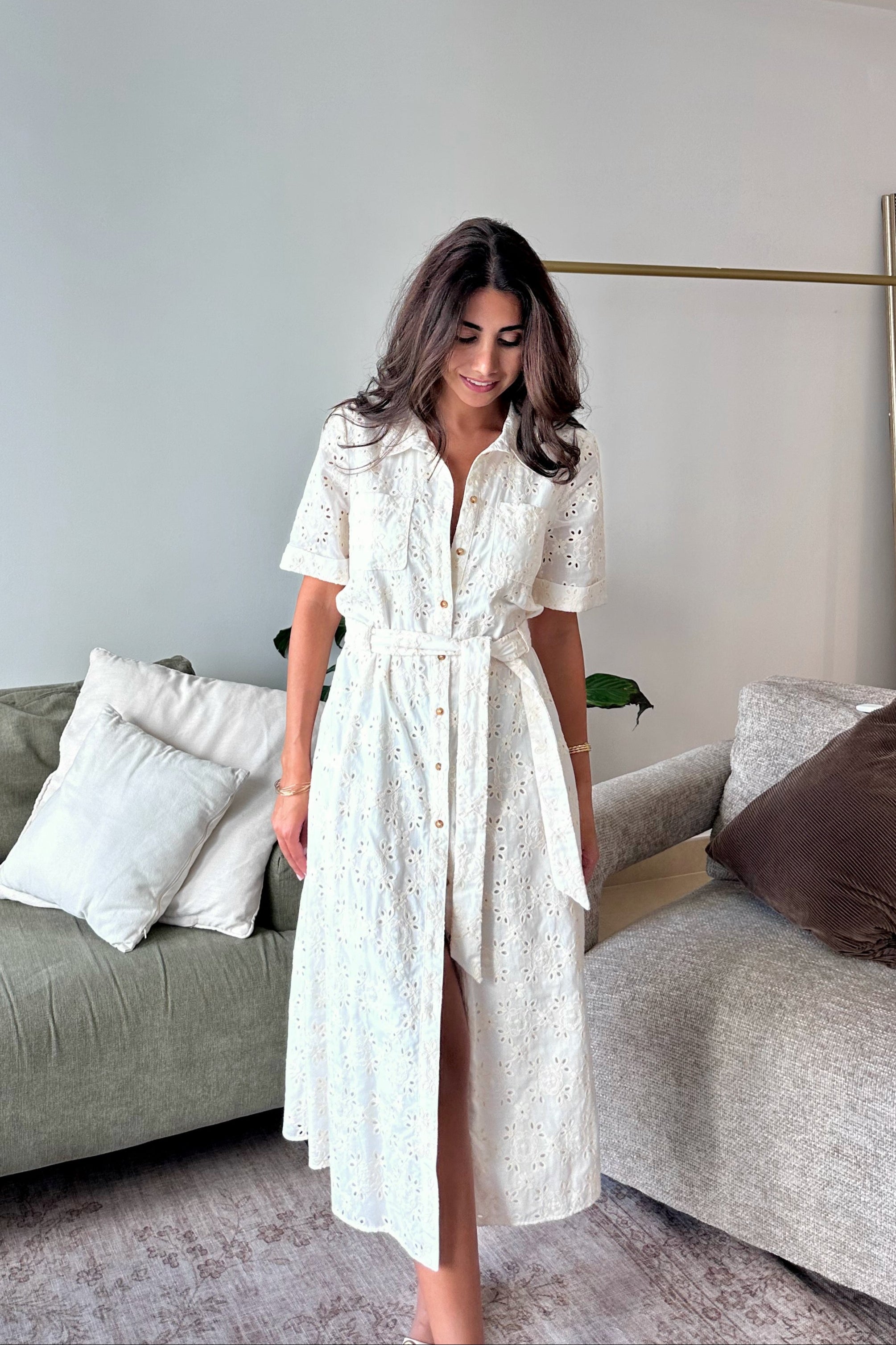 Embrace effortless French elegance with this Sézane ecru dress, delicately crafted in broderie anglaise.