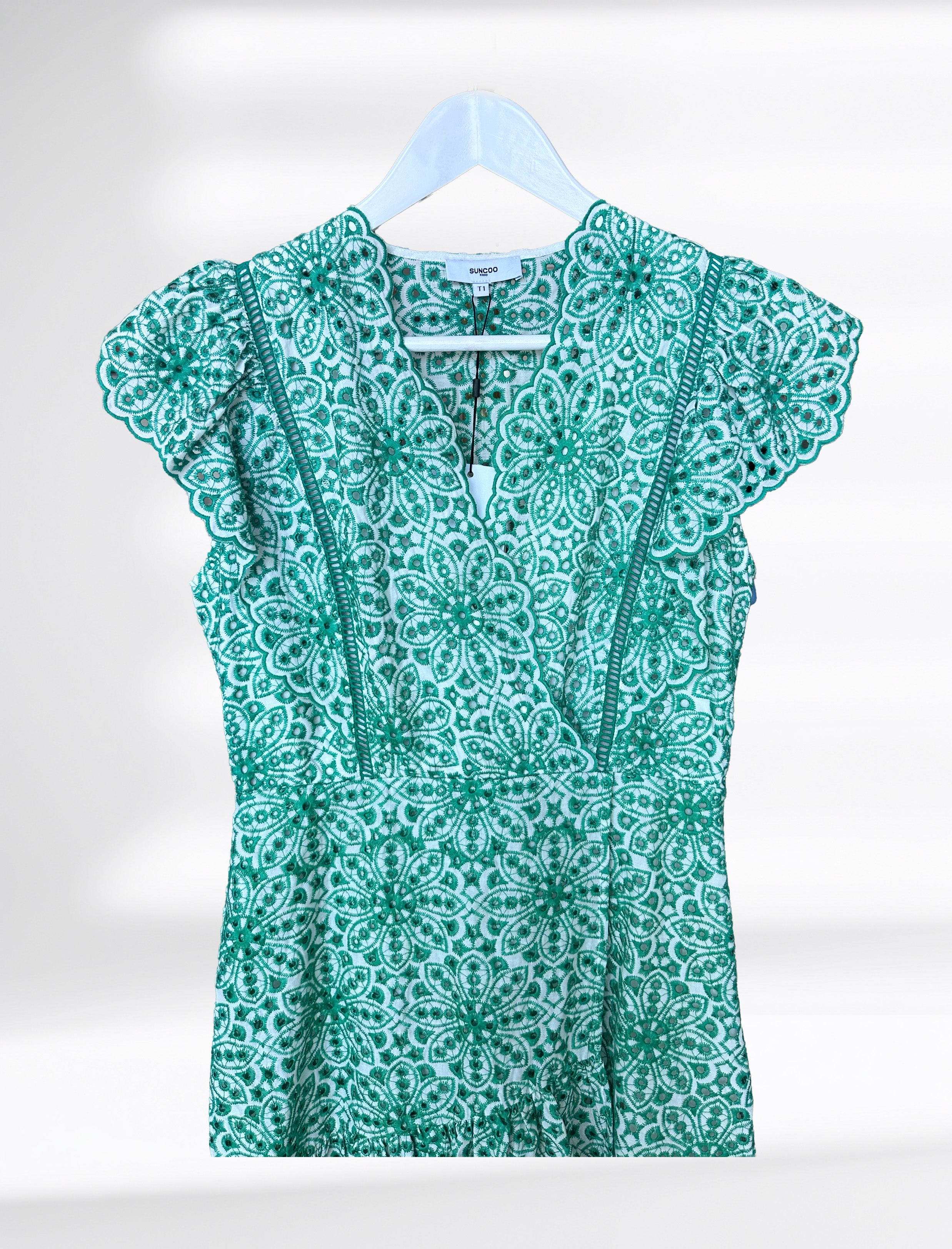 Bring a touch of French charm to your wardrobe with this Suncoo embroidered short dress.
