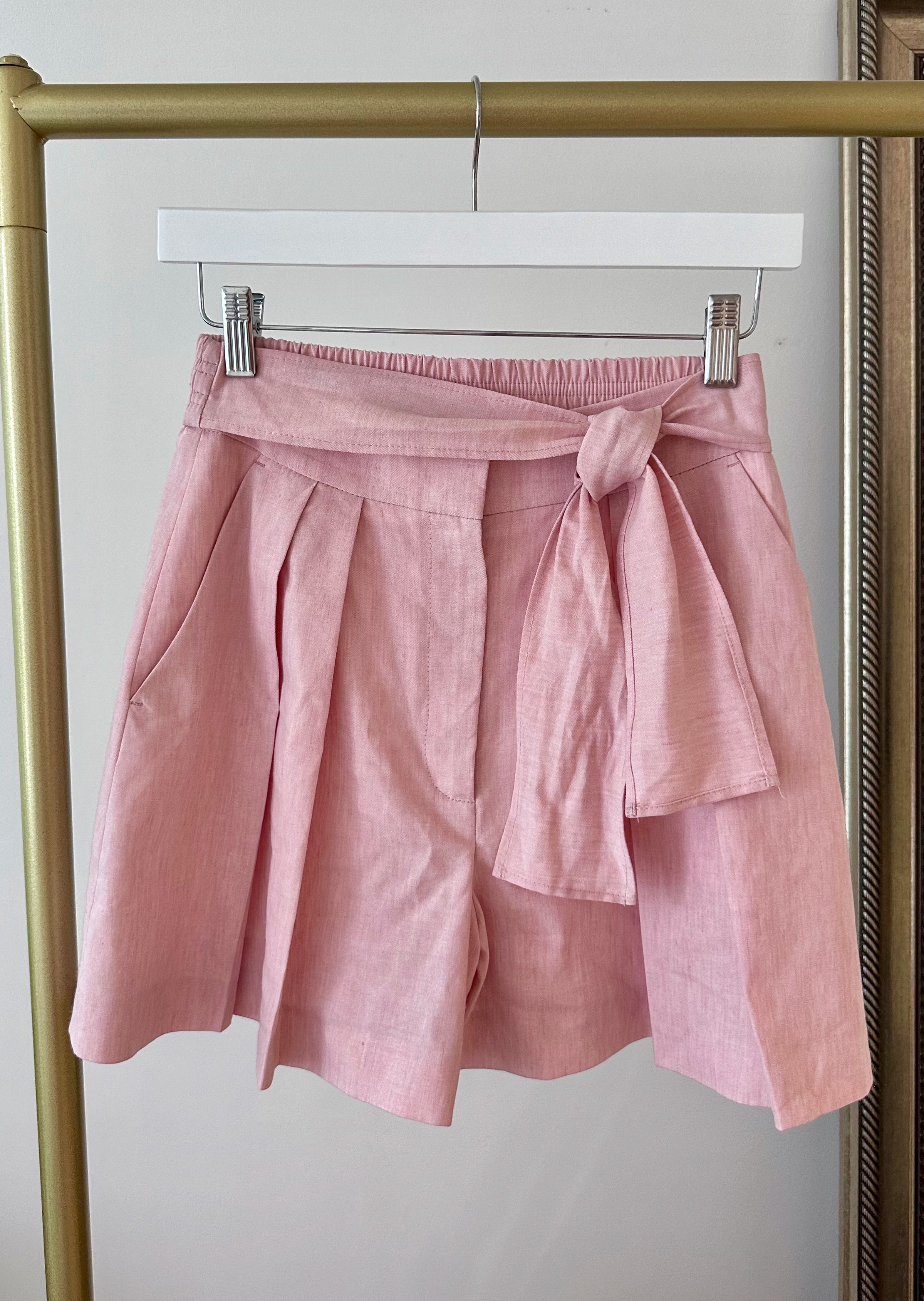 Bring a touch of French elegance to your summer wardrobe with these Claudie Pierlot pink bow-waist shorts.