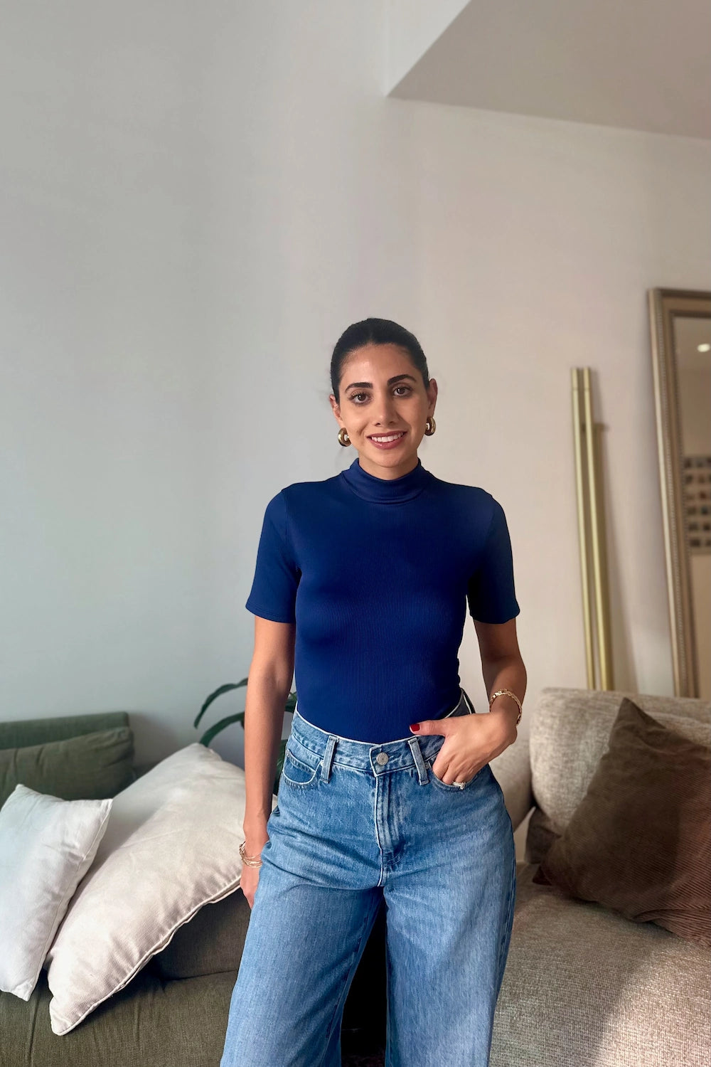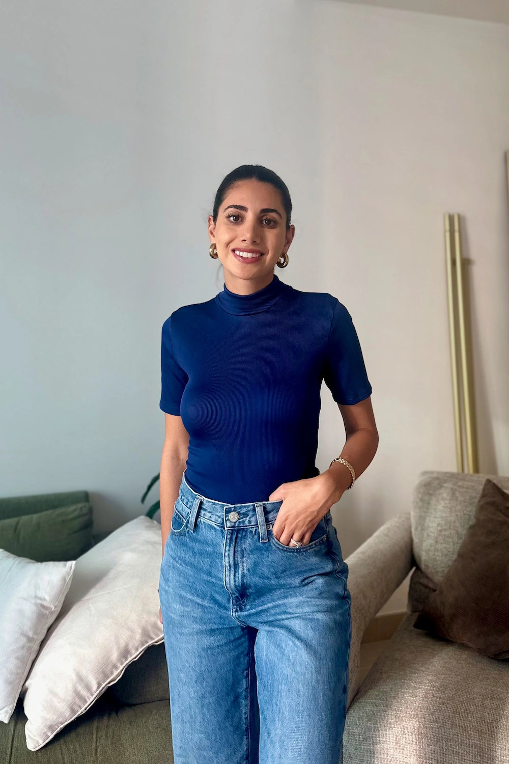 Elevate your wardrobe with this NOO blue short-sleeve bodysuit, designed to blend elegance, comfort, and effortless French style.